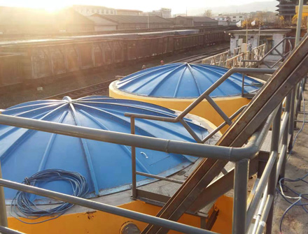 用于污水池和氧化溝的密封,防止臭氣散發(fā)。在蓋板上設(shè)排氣口,將臭氣用管道引出至除臭設(shè)備。